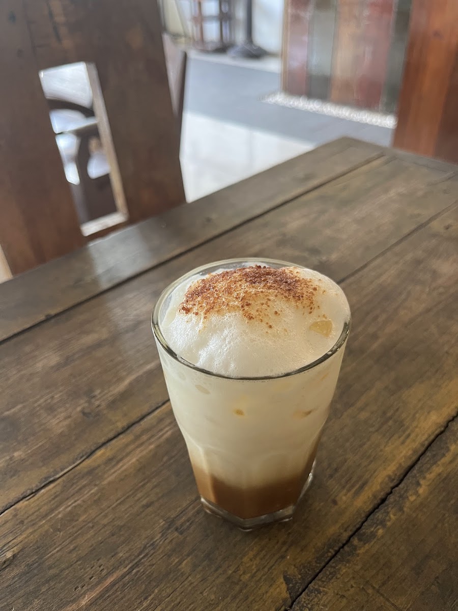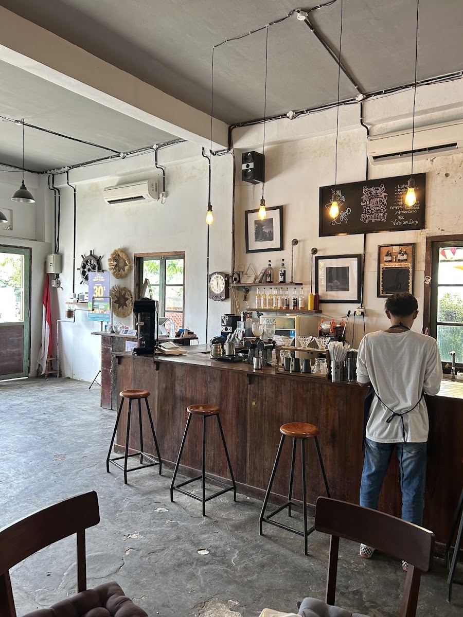As you step into Bumi Tujuh, you're greeted by an open view of the road, allowing natural light to fill the space and creating an inviting ambiance. The cafe features minimal partitions, making it feel expansive and airy—ideal for studying or relaxing during a coffee break. The wooden furniture adds a vintage touch to the decor, exuding warmth, despite showing a bit of wear that only adds to its character.